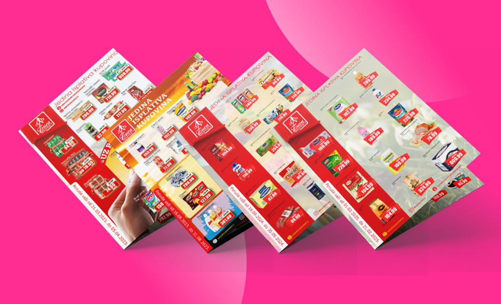 Saradnja od najranijih dana postojanja obe kompanije ostvarena je kroz izuzetnu povezanost i uzajamno poštovanje kao i neizmerno poverenje koje osećamo od naših dragih prijatelja iz Bisa Marketa. Na stotine lifleta, flajera, brošura i štampe velikih formata rezultat su naše uspešne saradnje.